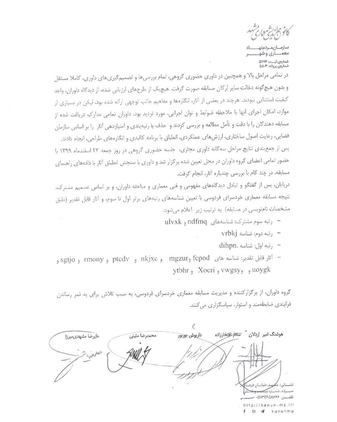 سایت اطلاع رسانی مسابقات معماری و شهرسازی ایران برگزارکننده ی هیچ مسابقه ای نیست و فقط مسابقات موجود را اطلاع رسانی می کند و از نیت هیچ برگزارکننده ای مطلع نیست که آیا نتایج را اعلام و جوایز را پرداخت می کنند یا خیر. بنابراین با توجه به جمیع شرایط موجود و با مطالعه کامل فراخوان و بررسی آن اقدام به شرکت یا عدم شرکت در مسابقه کنید. ضمنا اطلاع رسانی مسابقه دلیل بر این نیست که نقص نداشته باشد.
